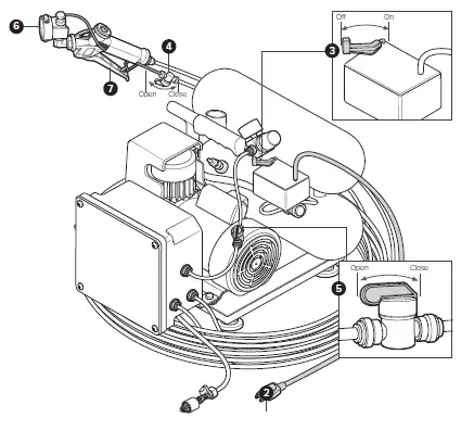 - Turn the power switch OFF to shut off the air compressor.