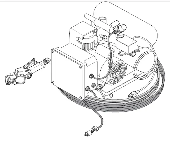 - Point the discharge wand in a safe direction and open the air shut-off valve at the trigger gun.
