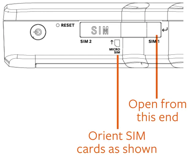 GO uses micro-sized cellular data SIM cards that you must install in the SIM card slots as illustrated below.