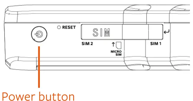 To power on GO, press the power button to the left of the SIM card slots, holding the button down for 5 seconds.