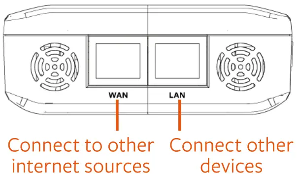GO has two Ethernet ports: a WAN port for connecting GO to a local wired internet source, and a LAN port for connecting your laptop or other devices to GO.