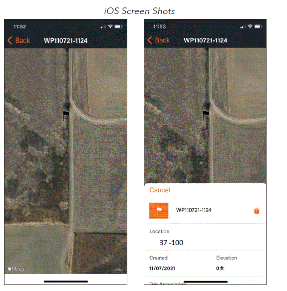 - Waypoint name: Waypoint – Date – Time “WP092121-1429” Waypoint September 21, 2021 – 12:29pm