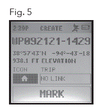 - On the Create screen, select one of 18 Location icons (Fig. 4. While standing at the location you want to mark, press the Toggle Down button (4) to highlight and select MARK (Fig. 5) to save the position in the BackTrack Mini’s memory.
