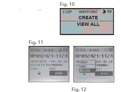 - The BackTrack Mini will not save a new Waypoint if there is insufficient internal memory. The user will need to release enough memory space to create a Waypoint. (Fig. 3)