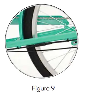 - If the rear tire has a puncture, remember that if you must remove it, it is attached to the motor, so make sure to disconnect the cable. (Figure 9)