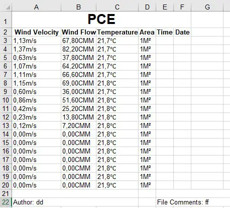 | Save an anemometer file File format .ane and .xls This function is only available when reading out the meter | |