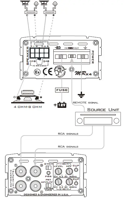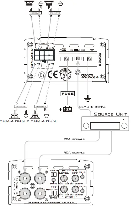 MRX4 AMPLIFIER WIRING (4-CHANNEL MODE)