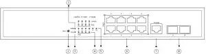 | Port number | 8 x 10/100/1000Base-T PoE ports, 2 1000Base-X SFP ports, 1 Console port |