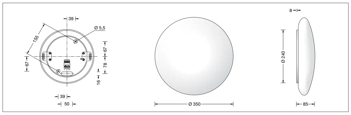 2 mounting holes ø 5.5mm