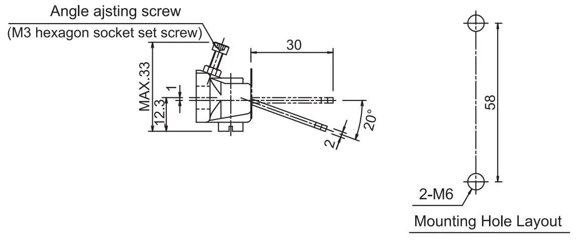 - Using the angle adjusting screw (M3 hexagon socket head screw), the actuator angle can be adjusted up to 20°.