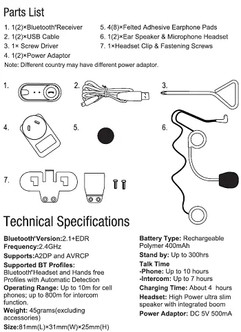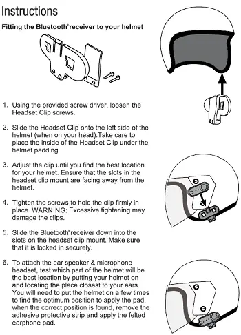 WARNING: Using headphones while operating a motorcycle, motor vehicle, watercraft or bicycle can be dangerous, Use caution while using your motorcycle Helmet Bluetootff’Kit when you are engaging in any activity that requites your full attention.