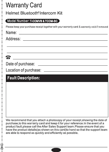 Congratulations on choosing to buy T-COMVB / TCOM-SC. By doing so you now have the assurance and peace of mind that comes with purchasing a product made by one of the leading manufacturers. All products brought to you are manufactured to the highest standards of performance and safety and, as part of our philosophy of customer service and satisfaction, are backed by our comprehensive 1 Year Warranty. We hope you will enjoy using your purchase for many years to come .