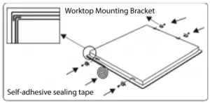 - Screw the 4 worktop mounting brackets on to the side walls of the appliance.