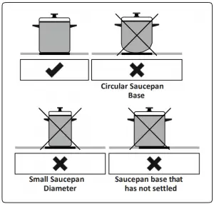 - While the cooking zone is in operation, it is important to ensure that the pan is centred correctly above the zone.