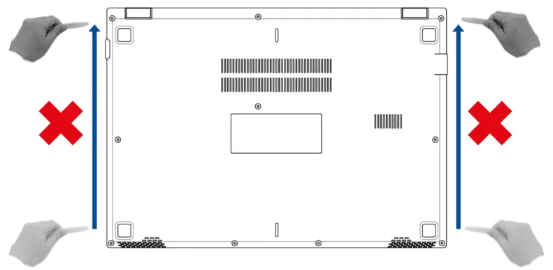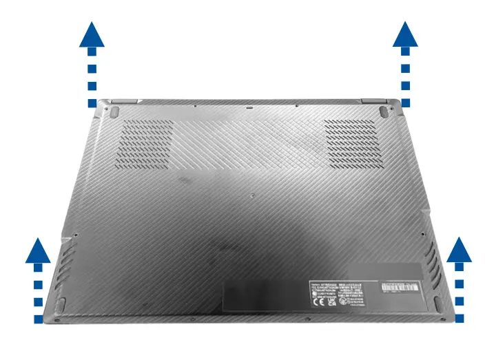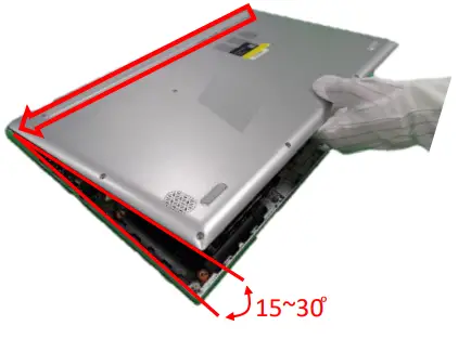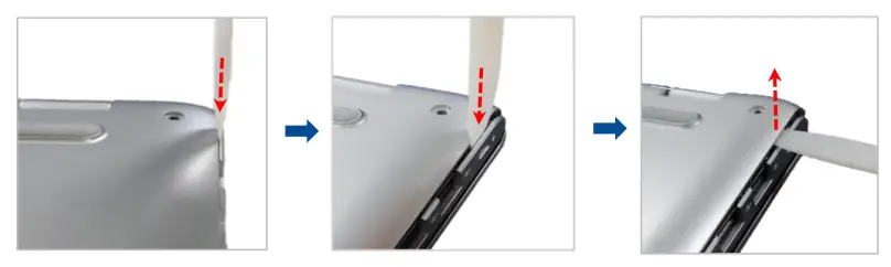 | IMPORTANT! Avoid sliding the non-conductive pry tool along the side of your Notebook PC to prevent damage. |