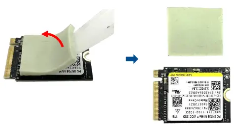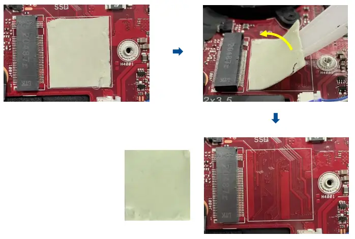 - Remove the THERMAL PAD from M.2 card (SSD). Please keep this part, it will be reused for new SSD installation.