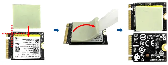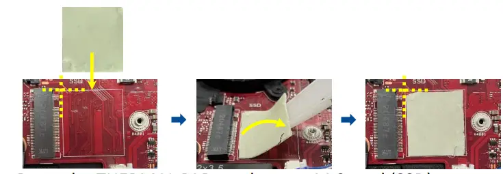 F. Paste the THERMAL PAD on the new M.2 card (SSD).