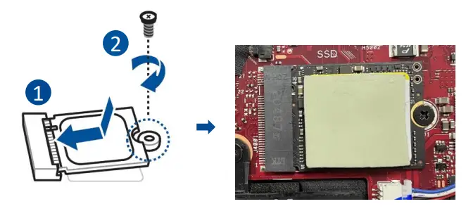 Refer to the following steps when installing a compatible M.2 card (SSD) in your Notebook PC: