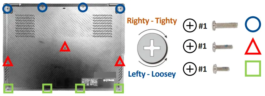 - Ensure the correct screw models are re-installed to your Notebook PC to prevent damage.