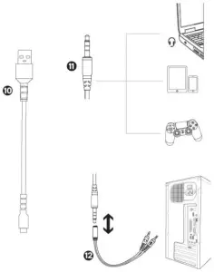 | Note: We recommend connecting the headphones to the PS4® game controller using the 3.5mm audio cable for optimal use. |