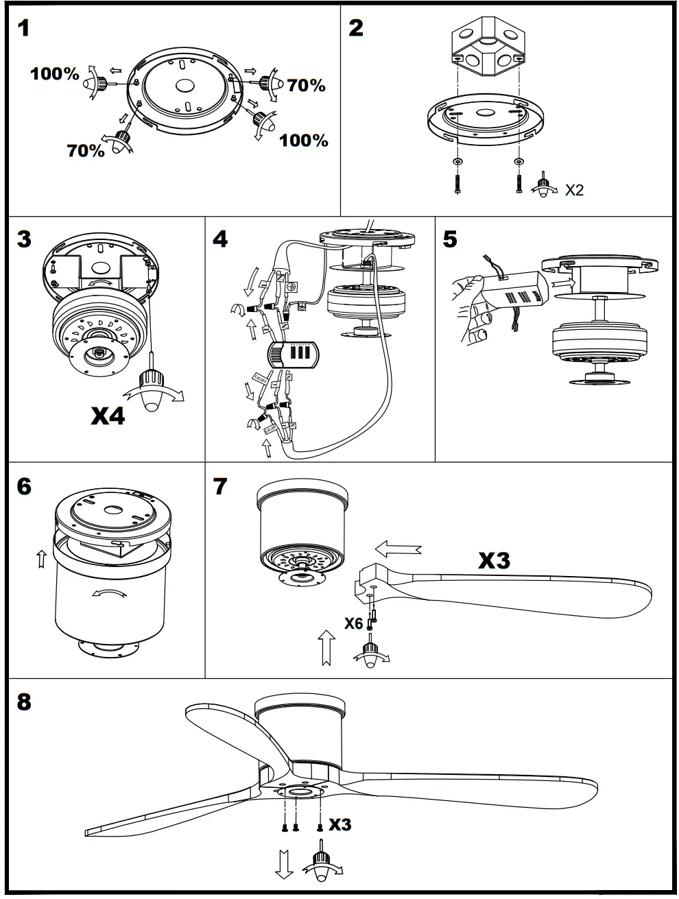 - WARNING: To reduce the risk of personal injury, do not bend the blade brackets (also referred to as “flanges”) during assembly or after installation. Do not insert objects in the path of the blades.