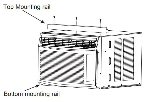 A. Mark the center of the window. Set the air conditioner in the window so that is it centered. Place the air conditioner so that front edge of the bottom mounting rail is against the back edge of the sill.