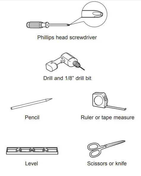 C. Extend the curtain panels until they fill the window. Mark the location of the holes in each corner. Use the drill and 1/8″ drill bet to drill pilot holes. Use 4 type B screws to secure the side panels in place.