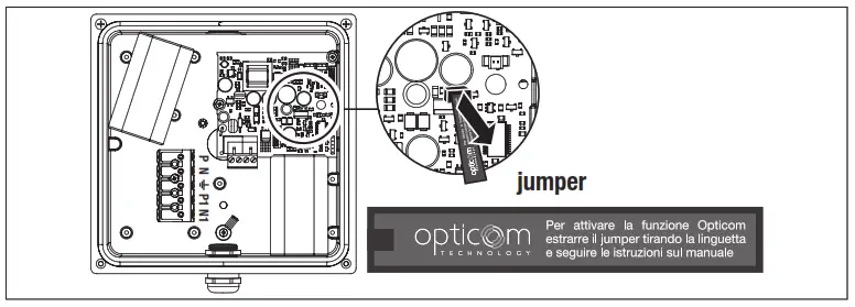 A*- Remove the jumper from the circuit to enable Opticom functions and proceed to program the lamp as shown in the App tutorial.