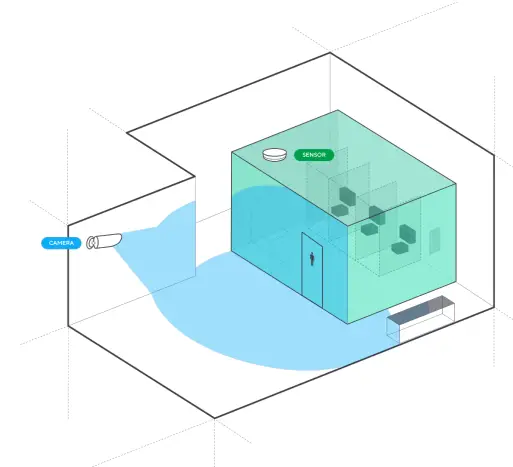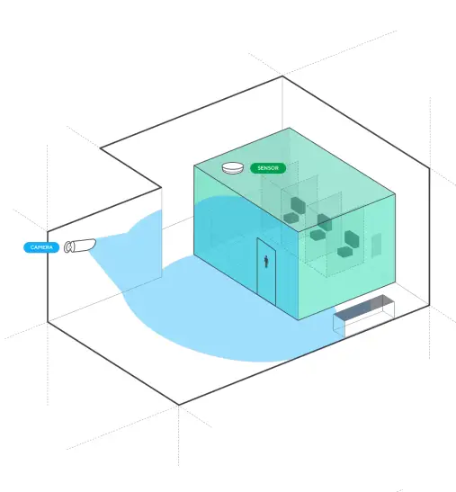 For non–private areas, such as classrooms, hallways, or open spaces, users may place sensors and cameras in the same area at their discretion. For the best context and visibility, have cameras positioned towards areas of interest. This can include directly where the sensor is and where vaping/smoking behavior is likely to occur.