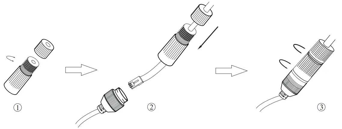 ② Run the network cable (without RJ 45 connector) through both elements. Then crimp the cable with RJ 45 connector.