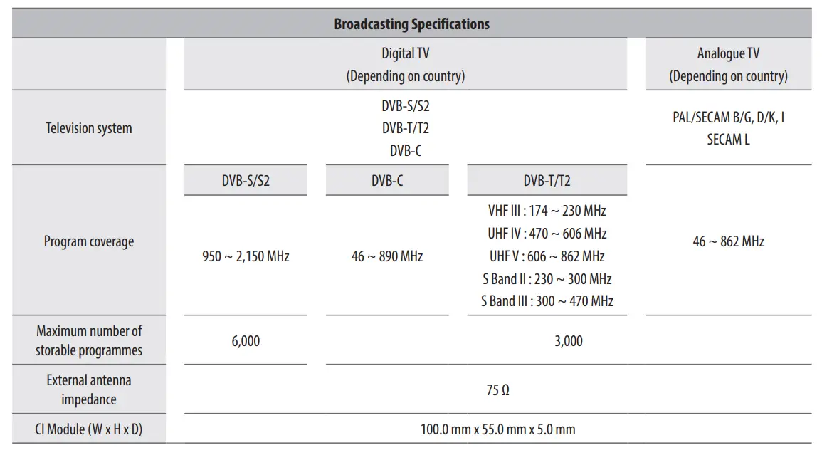 - Supported HDMI Audio format (Depending on model):