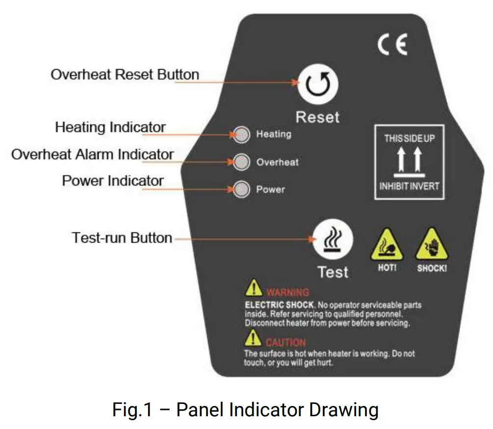 If the heater is not heating and the overheat protection light is not on, users can press “Test” button to perform the test-run operation.