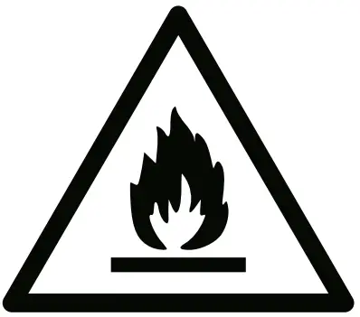 Warning: Risk of Fire flammable materials