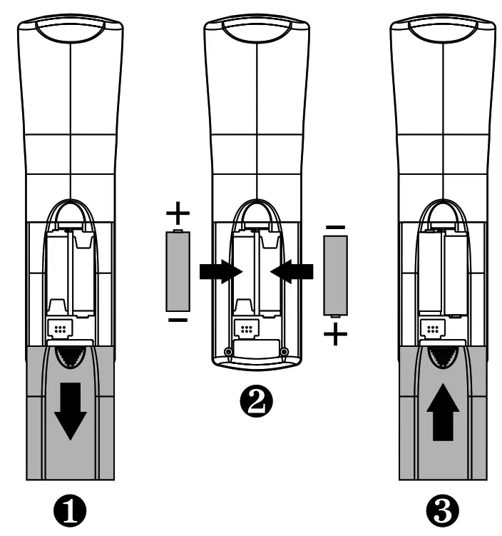 - Test the unit by pressing POWER and any mode key (e.g., AUX, VCR, CABLE, or TV). If the batteries are inserted correctly, the selected mode key will be lit.