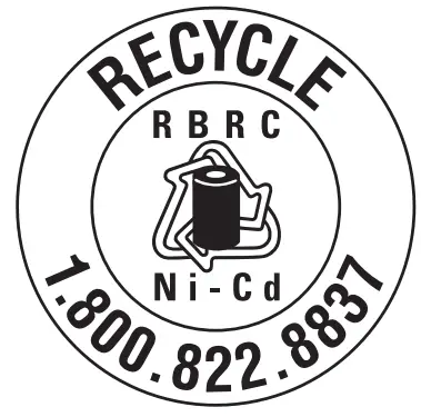 ![]() | CONTAINS SEALED, RECHARGEABLE NICKEL-CADMIUM BATTERY. MUST BE RECYCLED OR DISPOSED OF PROPERL |