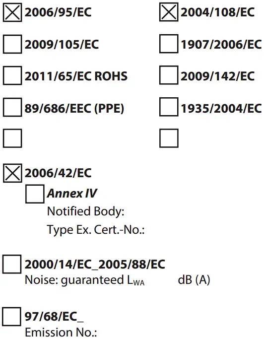 We, hereby declare the conception and construction of the below mentioned appliances correspond – at the type of construction being launched – to appropriate basic safety and hygienic requirements of EC Directives. In case of any change to the appliance not discussed with us the Declaration expires.