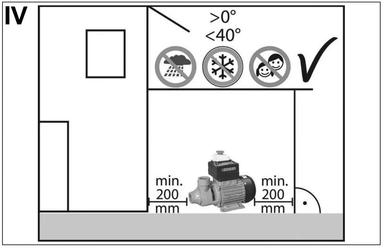 The pump is an electric equipment to be installed in a protected place, where is not exposed to weather impacts.