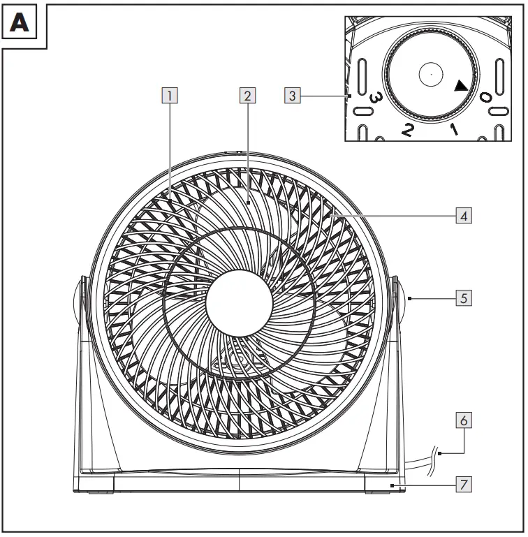 During use, keep hands, hair, clothing and utensils away from the safety grille to avoid injuries and damage of the product