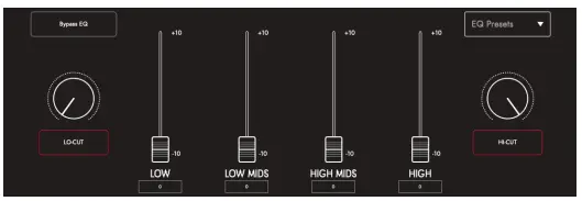 - HIGH: Controls a high shelf filter at 4KHz +/- 10dB