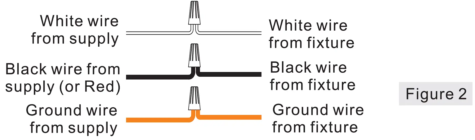 A. Use standard wire connectors (not included) to make all wire connections. Twist connectors until wires are tightly joined together.