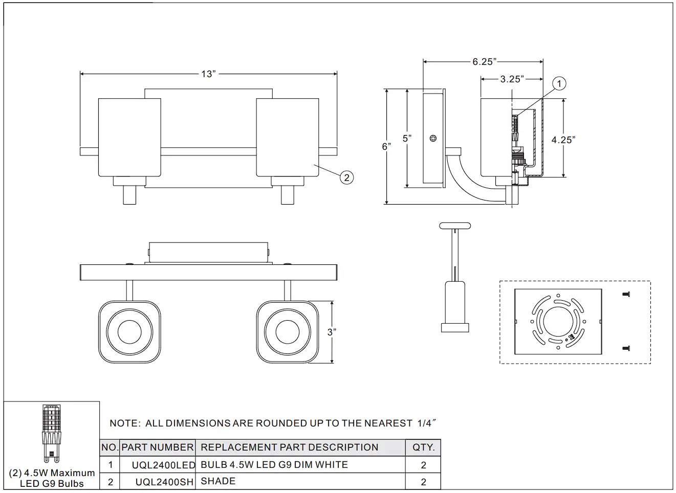 Light Source: (2) LED G9 4.5W Bulbs