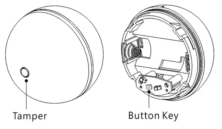 There are two tamper keys in the device, one is on the back side, and another is in the front side. Both of them can add, remove, reset, or be associated with the Z-WaveTM network.