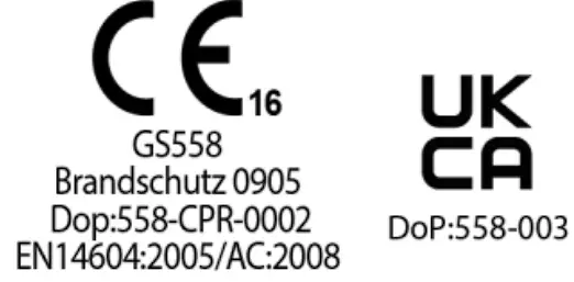 The declaration of performance for this product can be found under the following link: www.sebson.de/DOP_GS558_EN_N.pdf