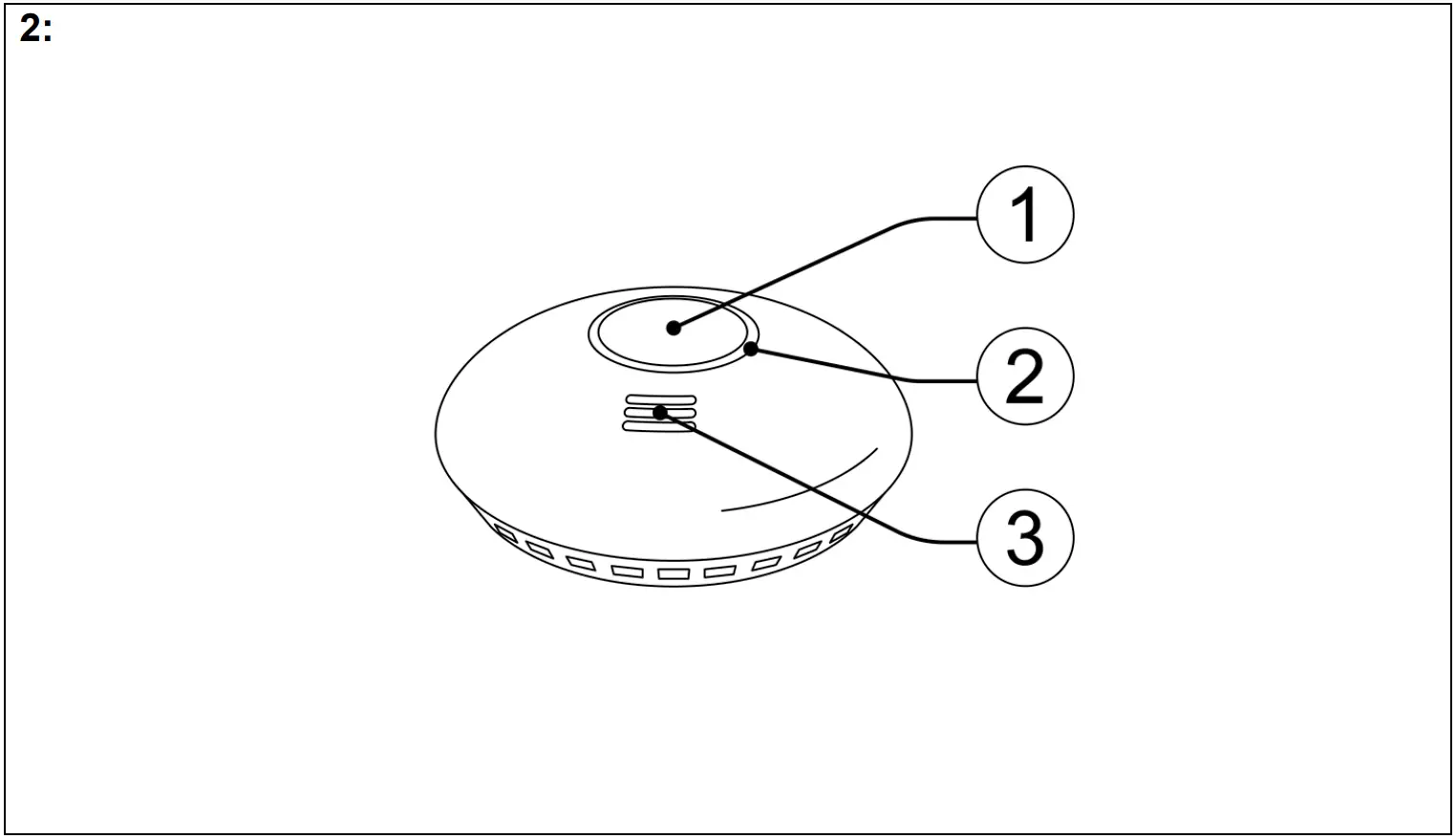- 1: TEST-button; 2: LED; 3: Speaker (see fig. 2)