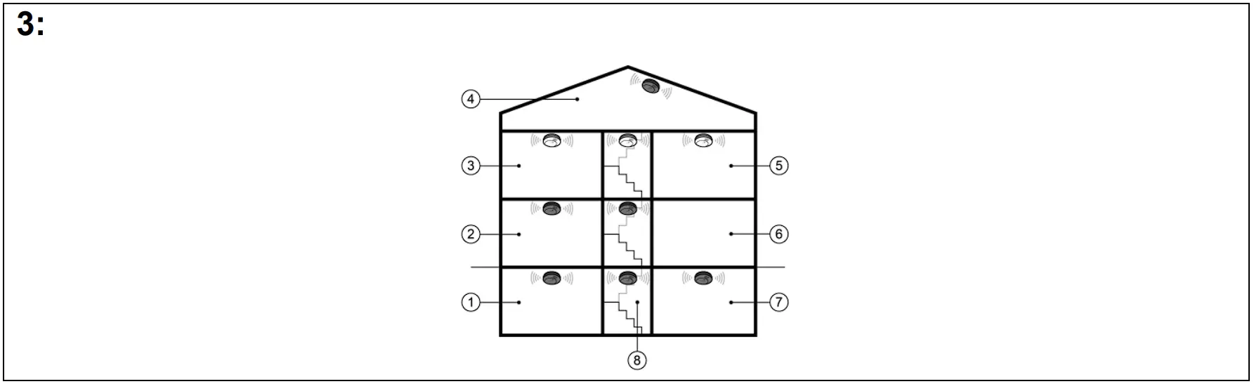 - Install several smoke alarms in large corridors or large rooms. Observe a maximum distance of 15m!