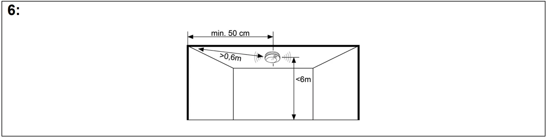 Observe a minimum distance of 0.5m from the side wall and 0.6m from the corner of the room, as well as a maximum installation height of 6m (see Fig.6).