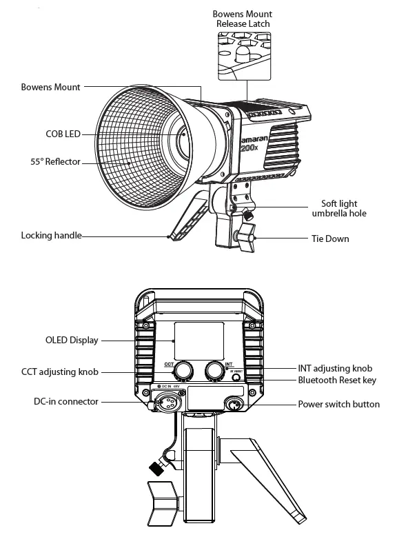 Amaran 200x is Amaran series of newly designed high cost performance lamps.Compact structure design, compact and light, excellent texture.Has a high performance level, such as high brightness, high indication, can adjust the brightness, etc.It can be used with the existing Bowens Mount lighting accessories to achieve a variety of lighting effects and enrich product usage patterns.So that the product to meet the needs of different occasions light control, easy to achieve professional level photography