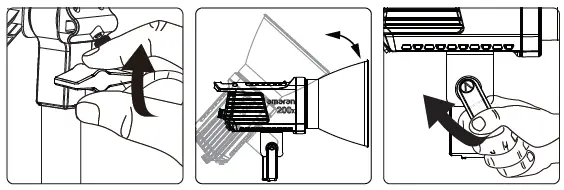 Push the lever handle according to the arrow direction shown in the picture, and rotate the 55° Reflector into it.Rotating in the opposite direction pulls out the 55° Reflector.