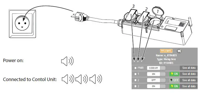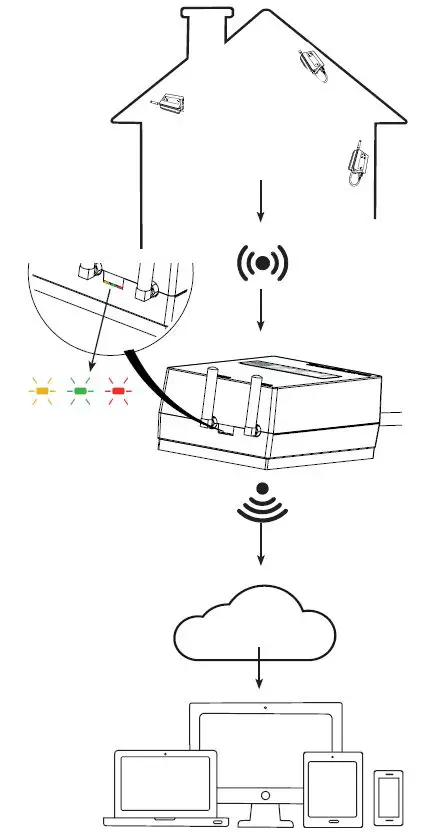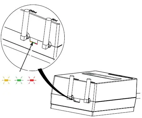 | Flashing: Start-up/installation phase or in the absence of contact with sensor boxes. Do not connect sensor boxes untill green LED flash on control box Constant: All sensor boxes has contact to the Control Unit | |