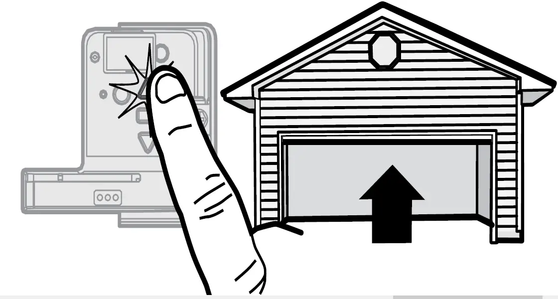 Press and release the Learn button on the door operator. The Learn indicator light will glow steadily for 30 seconds.